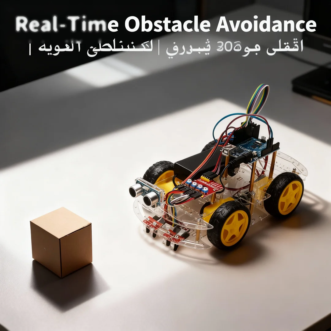 يدمج تتبع الخطوط بالأشعة تحت الحمراء واستشعار المسافة بالموجات فوق الصوتية لتحقيق تنقل ذاتي بالكامل. يحدد الروبوت العوائق، ويحسب الاتجاه، ويضبط المسار باستخدام تغذية راجعة من المستشعر. مثالي لعرض مبادئ الذكاء الاصطناعي في مجال الروبوتات الصفية.
