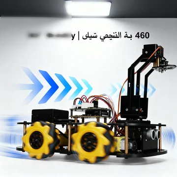 يدمج طقم سيارة الذراع الروبوتية AI Vision Mecanum Wheel الذكاء الاصطناعي والميكانيكا والتحكم بإنترنت الأشياء في منصة تعلم واحدة متعددة الاستخدامات. يعمل هذا الطقم بواسطة متحكم ESP32-CAM، ويدمج اتصال Wi-Fi والتعرف على الصور، مع دعم الحركة القابلة للبرمجة واتخاذ القرارات بالذكاء الاصطناعي. توفر عجلات Mecanum الأربع للمركبة حركة في جميع الاتجاهات لضمان سلاسة التنقل، بينما يتيح الذراع الروبوتي سداسي المحاور التحكم بالأشياء وفرزها وتكديسها. يكتشف مستشعر الموجات فوق الصوتية العوائق في نطاق 2-400 سم، بينما توفر وحدة الكاميرا بث فيديو مباشر للتتبع البصري وتحديد الهدف.
