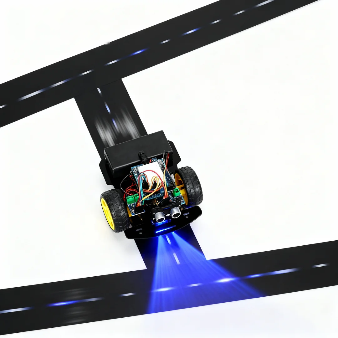 The robot includes ultrasonic distance sensors for obstacle avoidance, infrared modules for line following, and photoelectric components for route mapping. Together, they create a multi-sensor fusion environment, where data from different sources is combined for accurate navigation. Users learn how embedded systems handle concurrent data inputs and how AI logic prioritizes sensor signals. This concept mirrors modern self-driving technology — integrating vision, radar, and ultrasonic perception into one intelligent control framework.