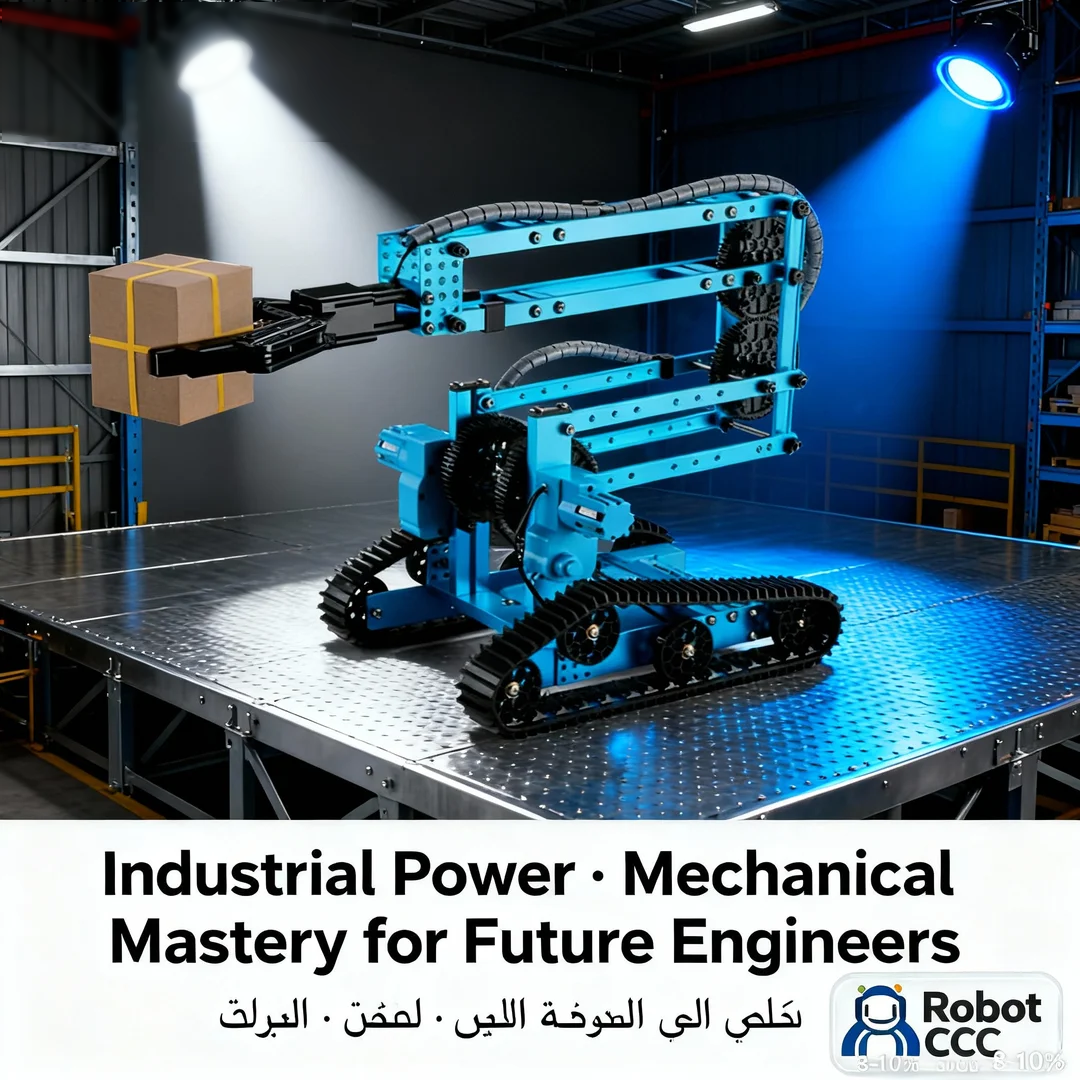 The tracked robotic arm vehicle is built for stability and terrain adaptability. It moves powerfully across rough surfaces, making it ideal for experiments in mechanical physics, balance, and traction. The crawler system replicates real industrial and military robots, teaching torque management and energy distribution across uneven ground.