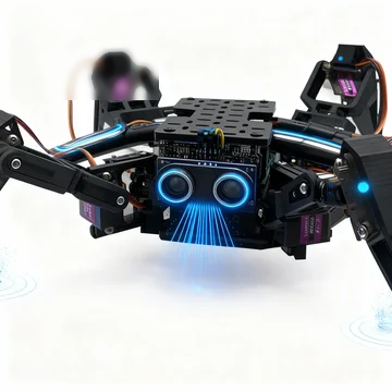 The 12-DOF quadruped bionic robot is an advanced intelligent platform integrating mechanics, electronics, and programming into one unit. Powered by the ESP32-WROOM dual-core processor (240 MHz), it precisely coordinates twelve servo motors to simulate lifelike walking, turning, and balancing. Equipped with both ultrasonic obstacle detection and an HD FPV camera, it supports environmental awareness and remote visual control through mobile or PC interfaces.