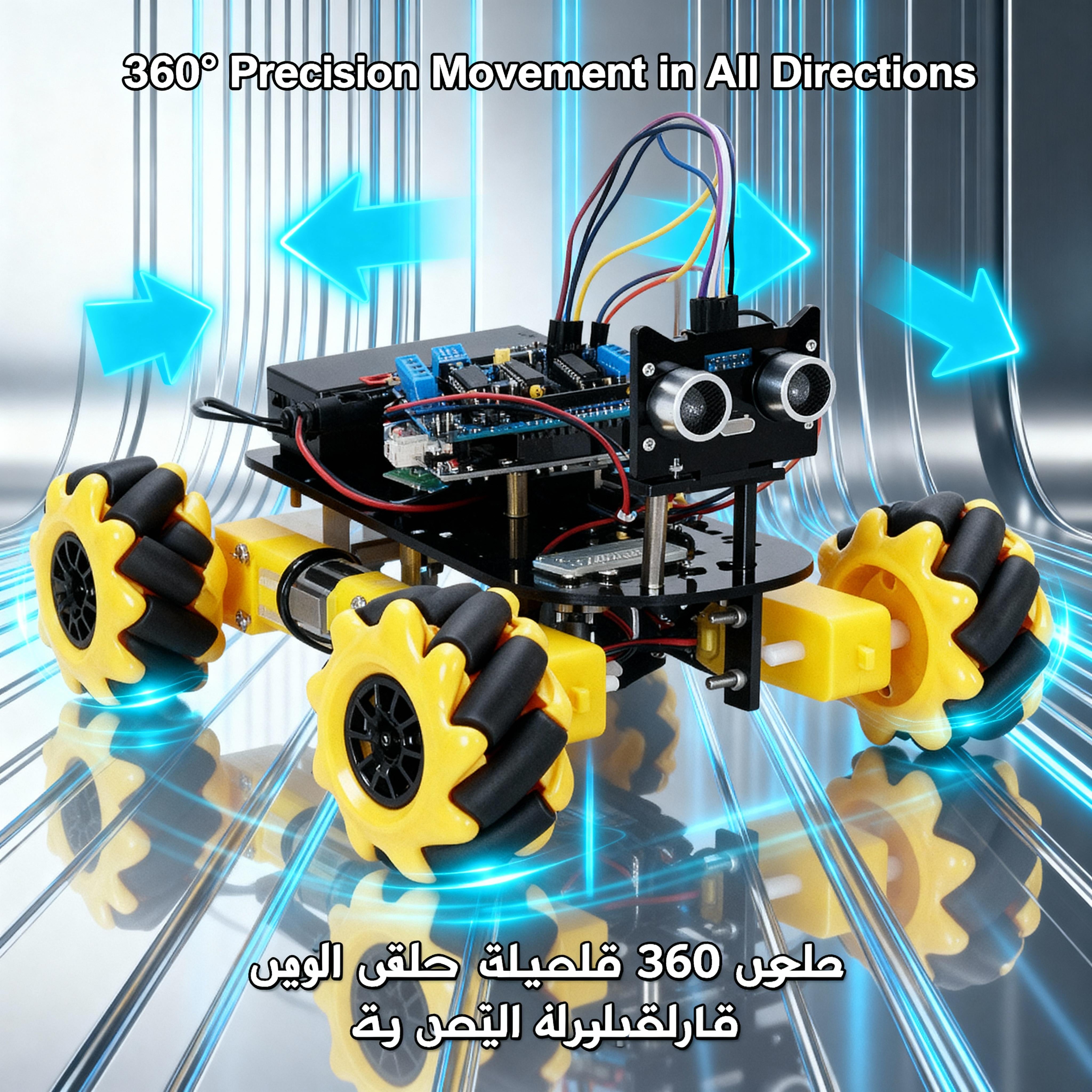 Equipped with four Mecanum wheels and precision DC motors, this Arduino-based robot enables omnidirectional movement — forward, backward, lateral, diagonal, and rotation-in-place. It demonstrates real vector motion, traction control, and torque distribution. Students can analyze motion equations and practice PID optimization in a physical robotics context. Perfect for engineering education, STEM competitions, and research demonstrations