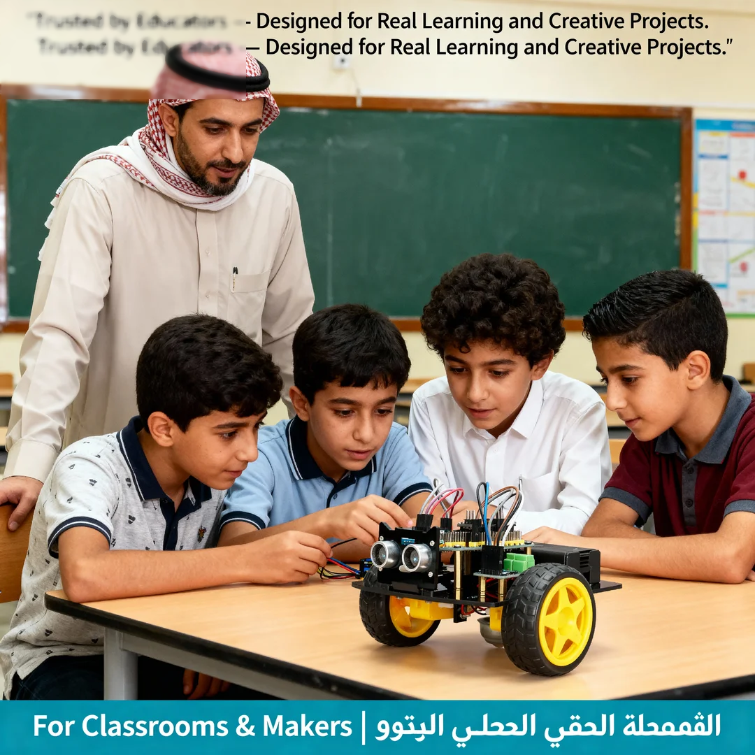 The kit’s durability and modularity make it perfect for repeated classroom use, workshops, and competitions. Its expandability ensures long-term educational value — supporting future upgrades in wireless communication, IoT applications, and AI-based control.